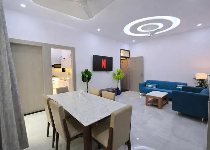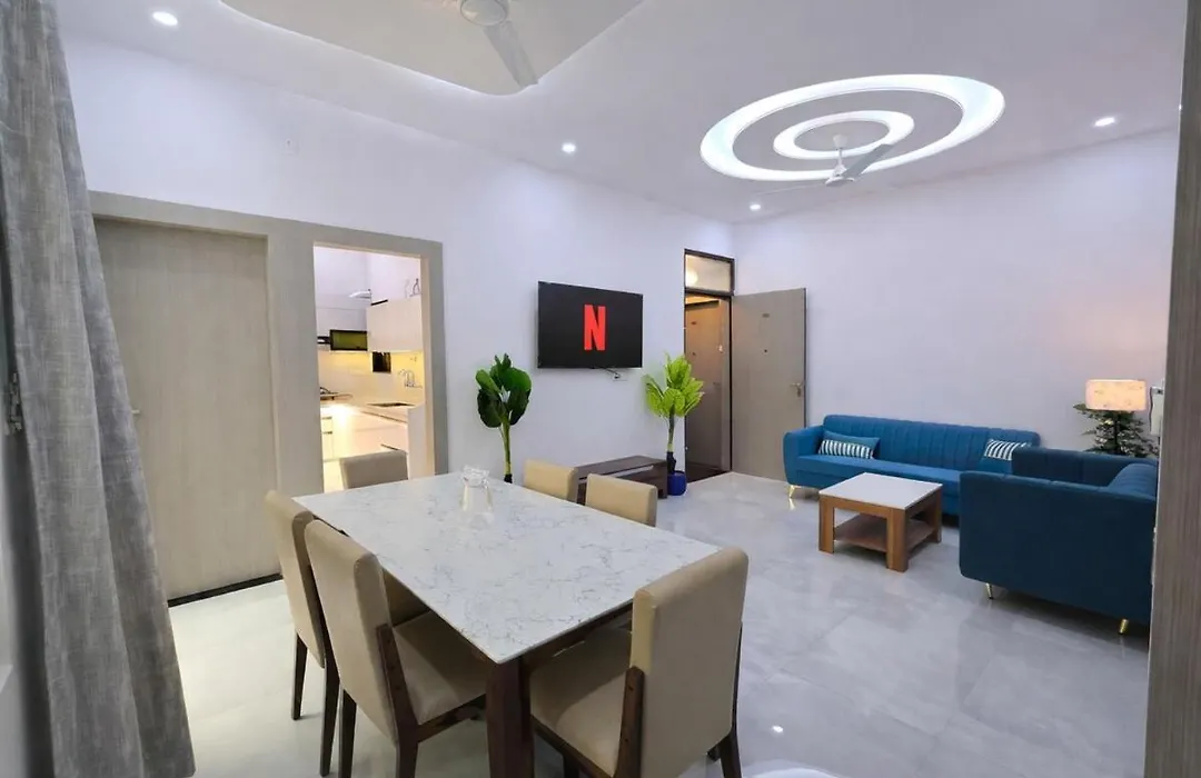 Guests can cook their own meals in a fully-equipped kitchen. Modern Home In Jaipur apartment is in proximity to the nearest bus stop Dher Ke Balaji.